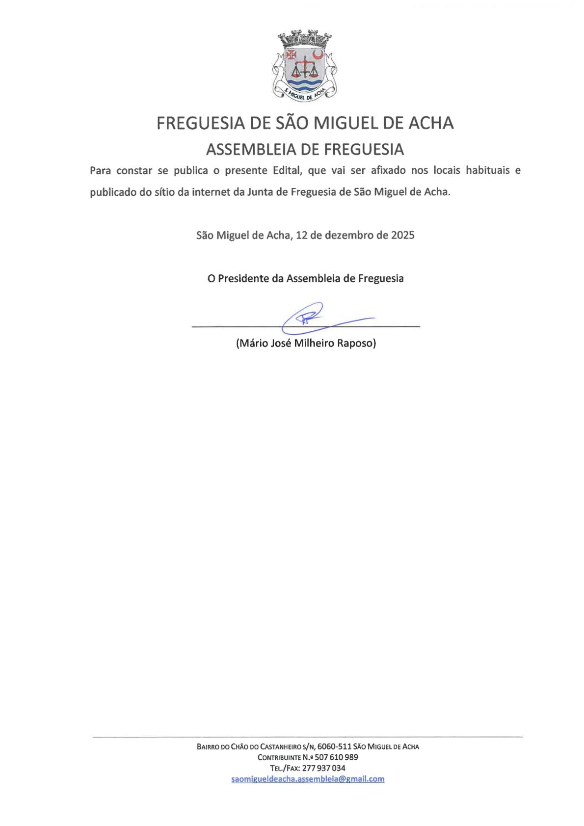 Edital – Assembleia de Freguesia