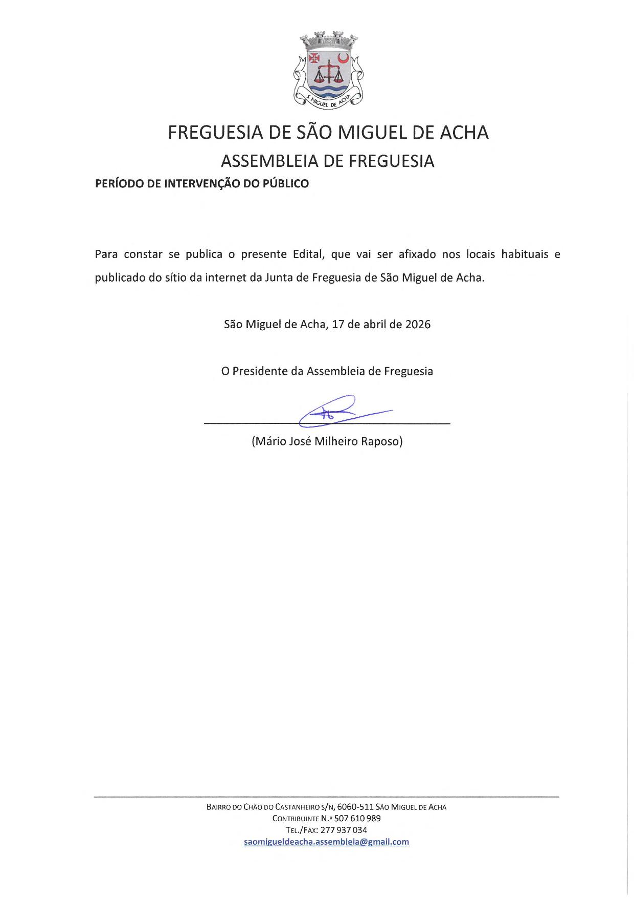 ASSEMBLEIA DE FREGUESIA – 29.04.2026